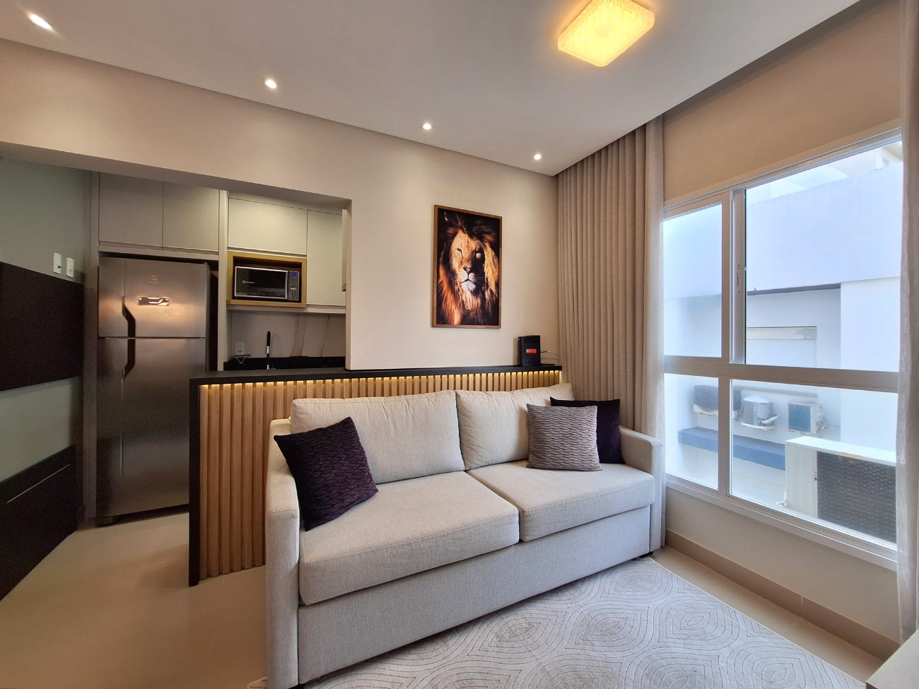 Excelente apartamento mobiliado e decorado na Zona Nova! Próximo do mar, poucos passos das Praças Avezon e Boianovski e cercado de todos os recursos e lazer! Composto por living integrado e cozinha americana com churrasqueira, um dormitório, banheiro social e lavanderia. Possui uma vaga de garagem. Excelente iluminação e ventilação natural, vista mar do quarto.