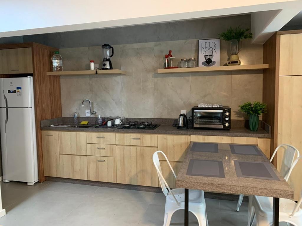 Um apartamento de 1 dormitório possui uma sala de estar, um quarto, uma cozinha e um banheiro. Bem aconchegante e projetado para acomodar uma ou duas pessoas.