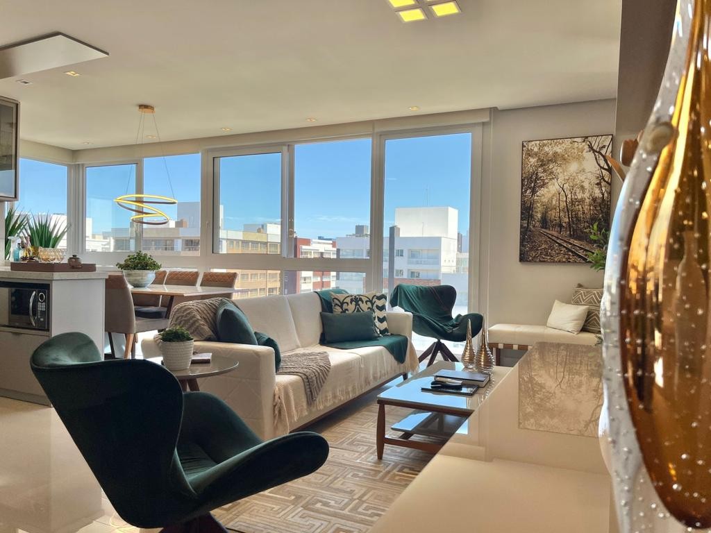 FRENTE A PRAÇA ! OPORTUNIDADE ! Lindo apto completamente mobiliado e decorado composto de três dormitórios sendo um suíte, amplo living dois ambientes, cozinha americana, banheiro social, área de serviço, churrasqueira, 2 vagas privativas, prédio de alto padrão; LOCALIZADO DE FRENTE PARA A PRAÇA ! BAIRRO NAVEGANTES ! CONFIRA !