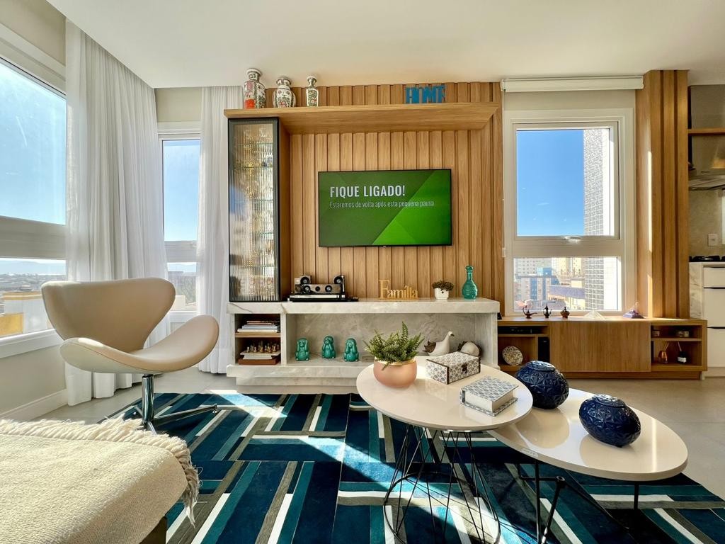 APARTAMENTO EM CAOÃO DA CANOA-RS Composto 3 dormitórios (1 suíte), lavabo, living 2 ambientes, cozinha americana com churrasqueira, banho social, área de serviços independente, box duplo térreo (2 carros), splits e junker instalados, equipado: com lareira, lava-louças, lava e seca, totalmente mobiliado e decorado, ?oeste/norte, área 97, 59 m2 privativos, área 134, 95 m2 no total, novo, nunca habitado, estuda prazo curto e com entrada. Prédio com 2 elevadores. Hall de entrada todo decorado, fachada 100% revestida em plaquetas, localizado no centro de Capão da Canoa, junto a todos os comércios, apenas a 150metros da Beira Mar e praça Luiz Bassani.