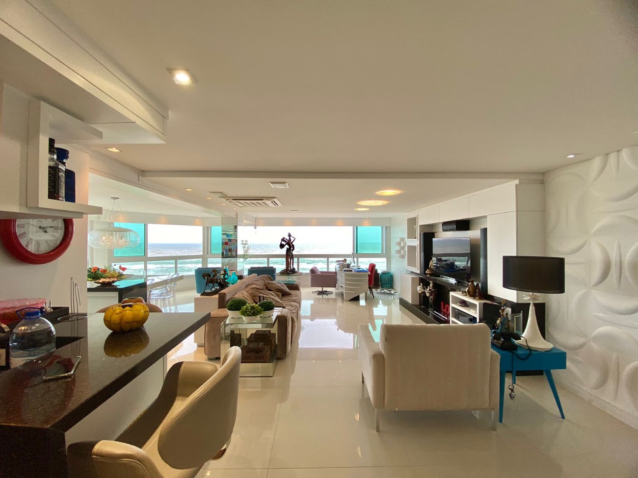 Fantástico apartamento dispondo de 04 amplas suítes, sendo 02 americanas e 02 individuais, lavabo, todos os ambientes com uma vista deslumbrante pro mar, esquadrias em PVC, piso porcelanato polido, altíssima qualidade construtiva, 256m² bem distribuídos com living de estar, jantar, gourmet com ilha, churrasqueira, office de frente pro mar. Edifício com portaria 24h, 02 elevadores, zeladoria, piscina aquecida e coberta, salão de festas com lounge externo e academia. Localizado no bairro Navegantes, região mais nobre da cidade, próximo de mercados, padarias, restaurantes e demais comodidades. Marque seu horário com um de nossos especialistas.
